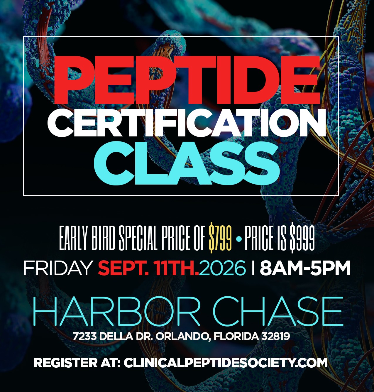 An upcoming one- day Peptide Certification Class in Orlando, FL on September 11th, 2026, will be curated by Drs. Luis Martinez and Edwin Lee.